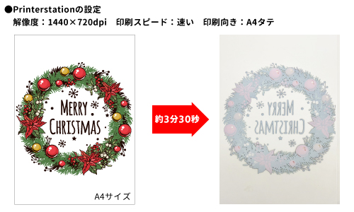 専用印刷ソフトPrinterstationより印刷した結果、約3分30秒で印刷できました。