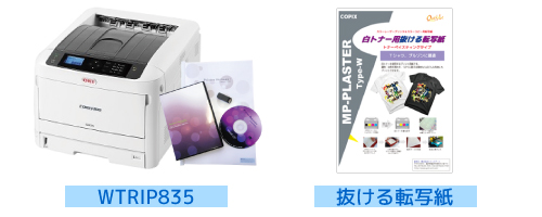 これからTシャツプリントを始めたい方におすすめなのが、白トナープリンタWTRIP835と抜ける転写紙、そしてプレス機を使ったシステムです。