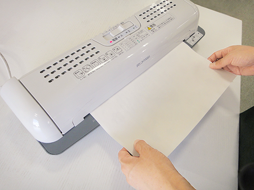 STEP4 ラミネーターに通します。(ラミネーターの温度は一番高い温度に設定してください)