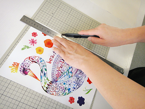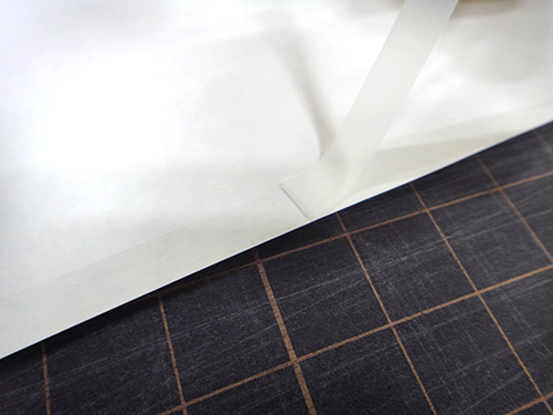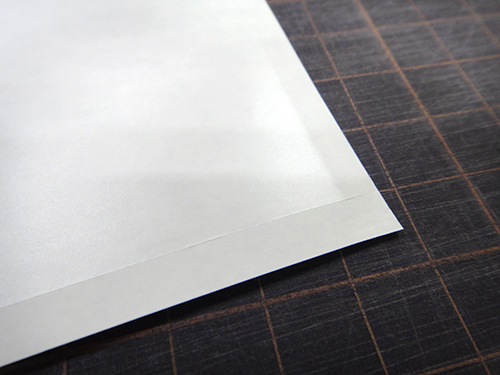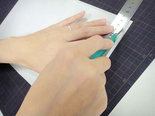 (1)裏紙までカットしないように気を付けながら、端から5mm程度の場所をハーフカットします。