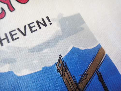 淡色生地用の転写紙は濃い色の生地には使えません。左右反転して印刷します。印刷面を生地にあててプレスします。