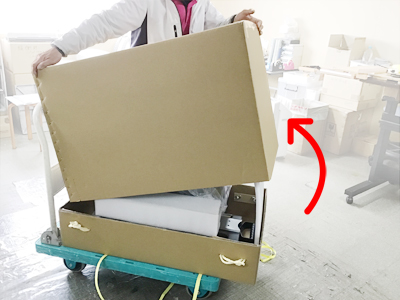 上に被さっている段ボールを持ち上げるようにして開封してください。