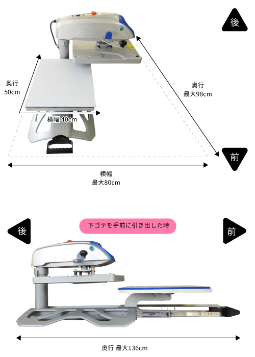 | プレス方式 | ◎ 水平自動昇降(電動) | 手動ハンドル操作 |