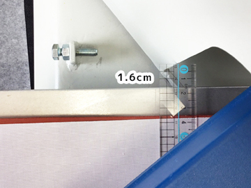 支柱とコテとの間隔は、平常時が4cmでスウィング時に一番近くなる部分で1.6cmです。