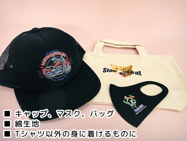 これまで熱転写が難しかった素材にもプリントできるのがDTF製法の最大の強みです。