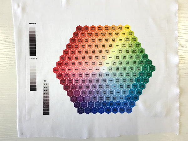 上写真の肌部分などは、左の緑の生地にプリントすると色が分からなくなります。