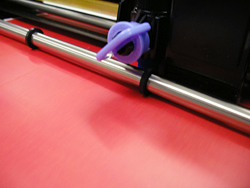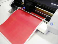 濃色生地用カラーレーザー転写紙(EA-WHS/WHS-CL)をカッティングマシーンでカットします。