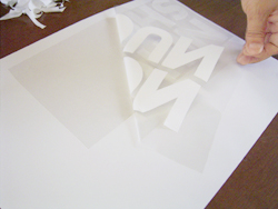 リタックシート(弱粘着の透明シート)に切り抜いた文字を受け取ります。
