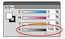このような場合は、黒と隣り合っている部分を先にCMYKで印刷し、その後CMYWで白い部分を K100%にしたデータを印刷します。