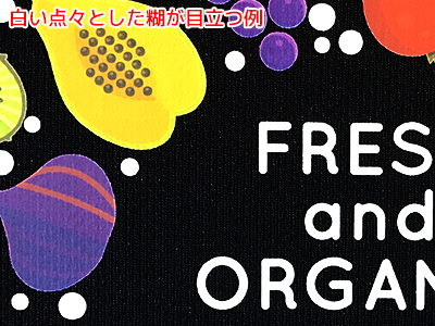 糊がつくため、強圧で作業したシートを濃色のポリエステル生地にプリントすると白い点々が目立つことがあります。