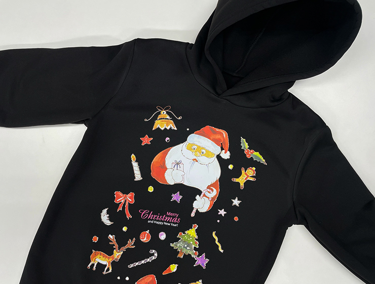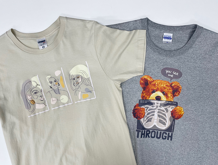 トナー転写の魅力であるフルカラーのカッティング・カス取り不要で細かいデザインまで表現できるほか、綿・ポリ・ナイロンなどの幅広い生地にプリントができます。