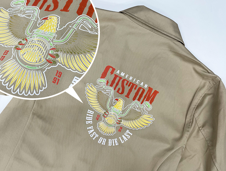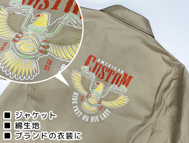 ●綿・ポリエステル・ナイロン対応(※強撥水生地は不可)で、生地色を問わず高発色