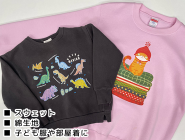 ・綿、ポリエステル、ナイロン、スウェット、帽子など、幅広い素材にプリント可能