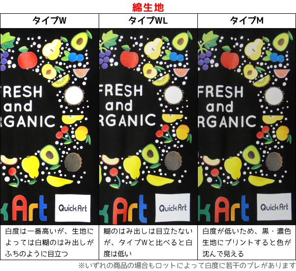・Type-Wは主に 綿・ポリエステル生地を推奨
